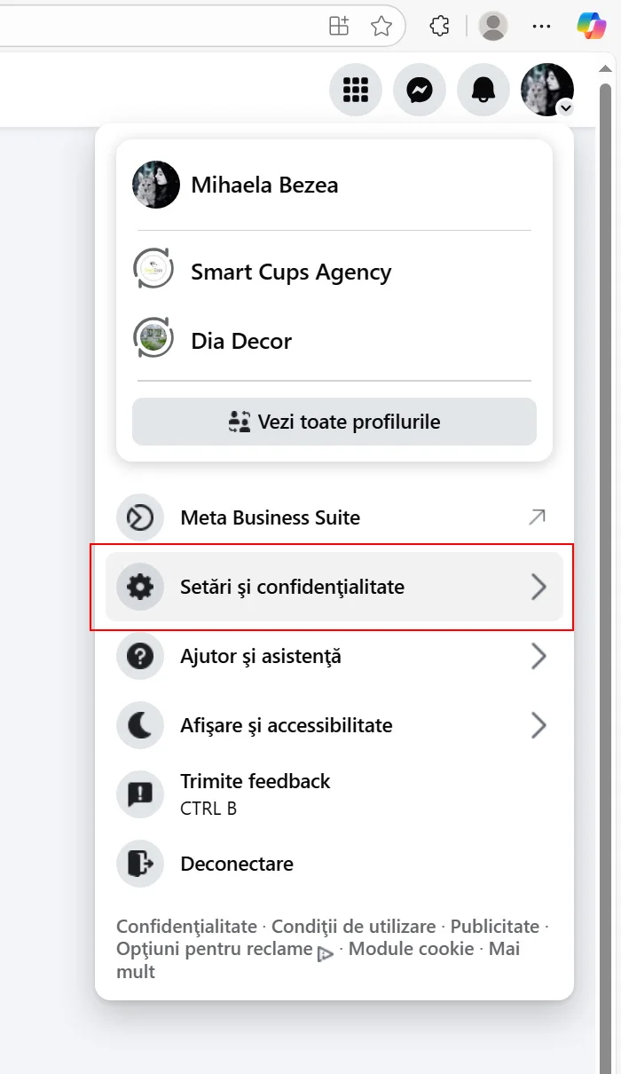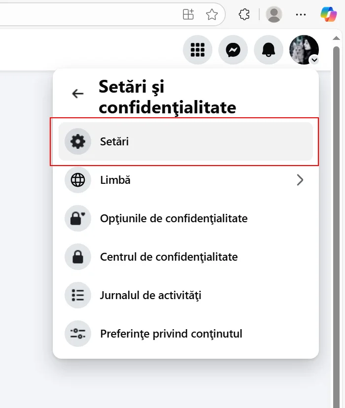 2. Apasă pe iconul de profil din partea dreaptă sus