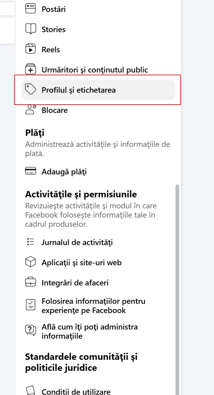 5. Apasă pe Profilul și etichetarea din meniul din stânga
