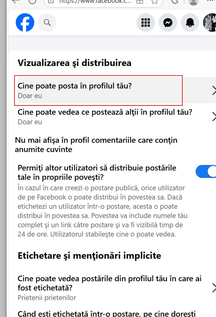 6. Apasă în dreapta opțiunii Cine poate posta în profilul tău? pentru a selecta audiența.